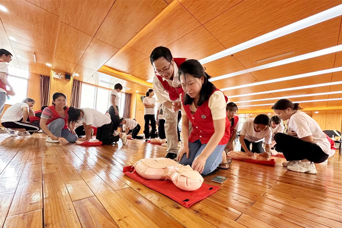 为贯彻落实党的二十大精神,积极响应“健康中国”行动,广泛传播和普及急救知识,进一步增强人民紧急避险和自救互救的意识和能力,保障人民的生命安全和身体健康,2023年8月24日上午,williamhill官方网站教工第一党支部联合williamhill中文第一附属医院临床技能协会,在布蕾幼儿园开展了“‘救’在身边”急救公益活动。