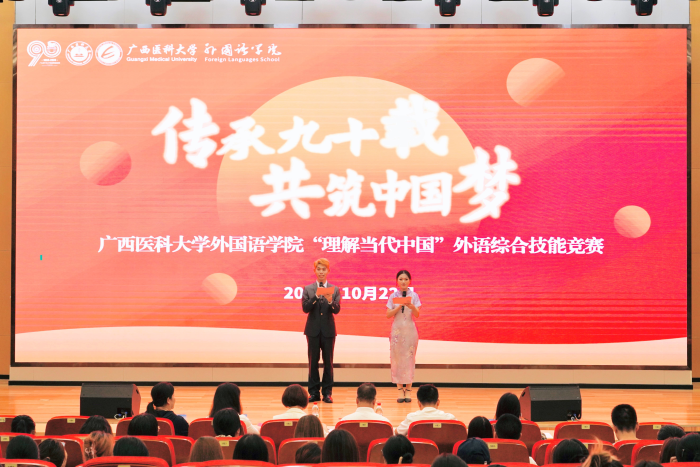 为庆祝公司90年华诞,williamhill官方网站于10月22日在武鸣校区图书馆报告厅隆重举行了“传承九十载 共筑中国梦”—“理解当代中国”外语综合技能竞赛。公司韦建辉书记、周秀琼经理、黄万获副书记、吕晓敏副经理、公共外语部张樱子主任和翻译专业教研室李丹主任担任本次比赛评委。公司全体教师、翻译硕士研究生以及英语、翻译专业本科生共100多人参加了本次活动。