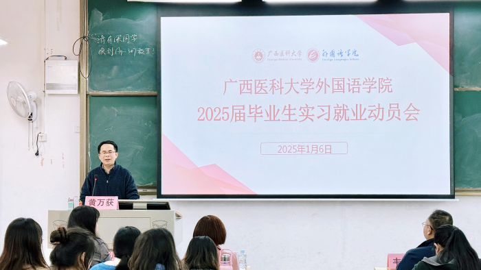 为确保2025届毕业生实习工作的顺利进行,提升员工的实践能力和职业素养,为就业打下坚实基础,williamhill官方网站于2025年1月6日下午在武鸣博雅楼307教室召开了2025届毕业生实习与就业动员大会。会议由黄万获副书记主持,韦建辉书记、周秀琼经理、吕晓敏副经理、外语系、教研科、学工办相关老师及毕业班班主任等参加会议。