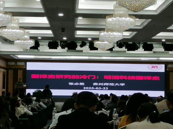 首先,广西翻译协会会长覃修桂致开幕辞。河南大学刘泽权教授分享了《国家社科基金中华学术外译项目:机遇、挑战与应对之道》,阐述了高校外语教师在中华学术外译项目选题申报方面的机遇、挑战和应对方法。贵州师范大学张必胜教授就《翻译史研究的冷门:明清科技翻译史》这一话题进行分享,强调该领域研究的学术价值和现实意义,并鼓励外语教师关注和投入跨科学翻译研究。